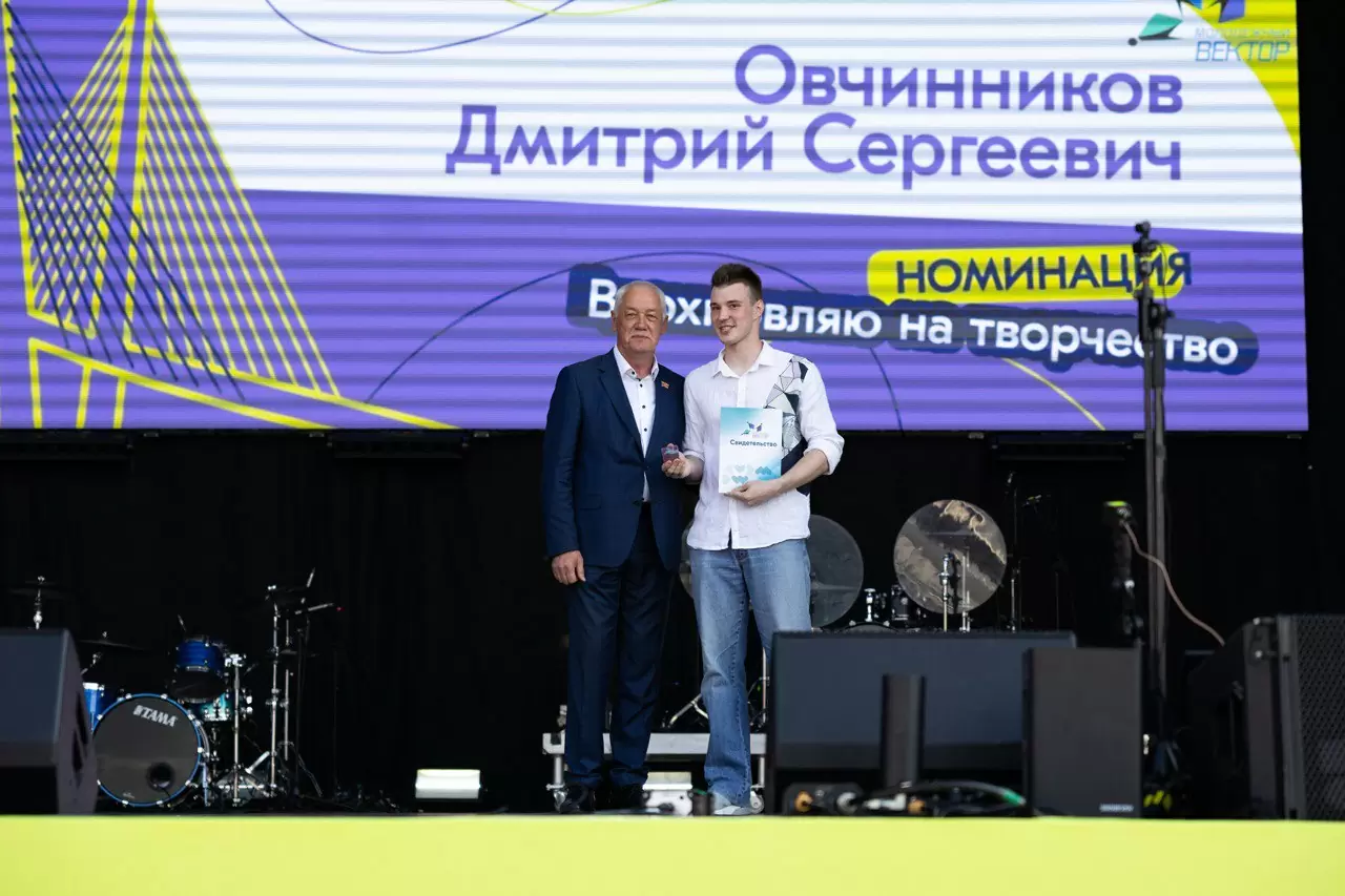 В номинации «Вдохновляю на творчество» почетным знаком отмечен Дмитрий Овчинников, руководитель творческой инициативной группы «Фарватер». В 19 лет студент является организатором развлекательно-обучающих и патриотических мероприятий, участвует в городских событиях и концертах. Является обладателем гран при регионального конкурса «Студенческой весны – 2025» в составе вокального коллектива «Престиж» ВВГУ. Победитель конкурса таланта и красоты «Мисс и мистер ВВГУ – 2024».